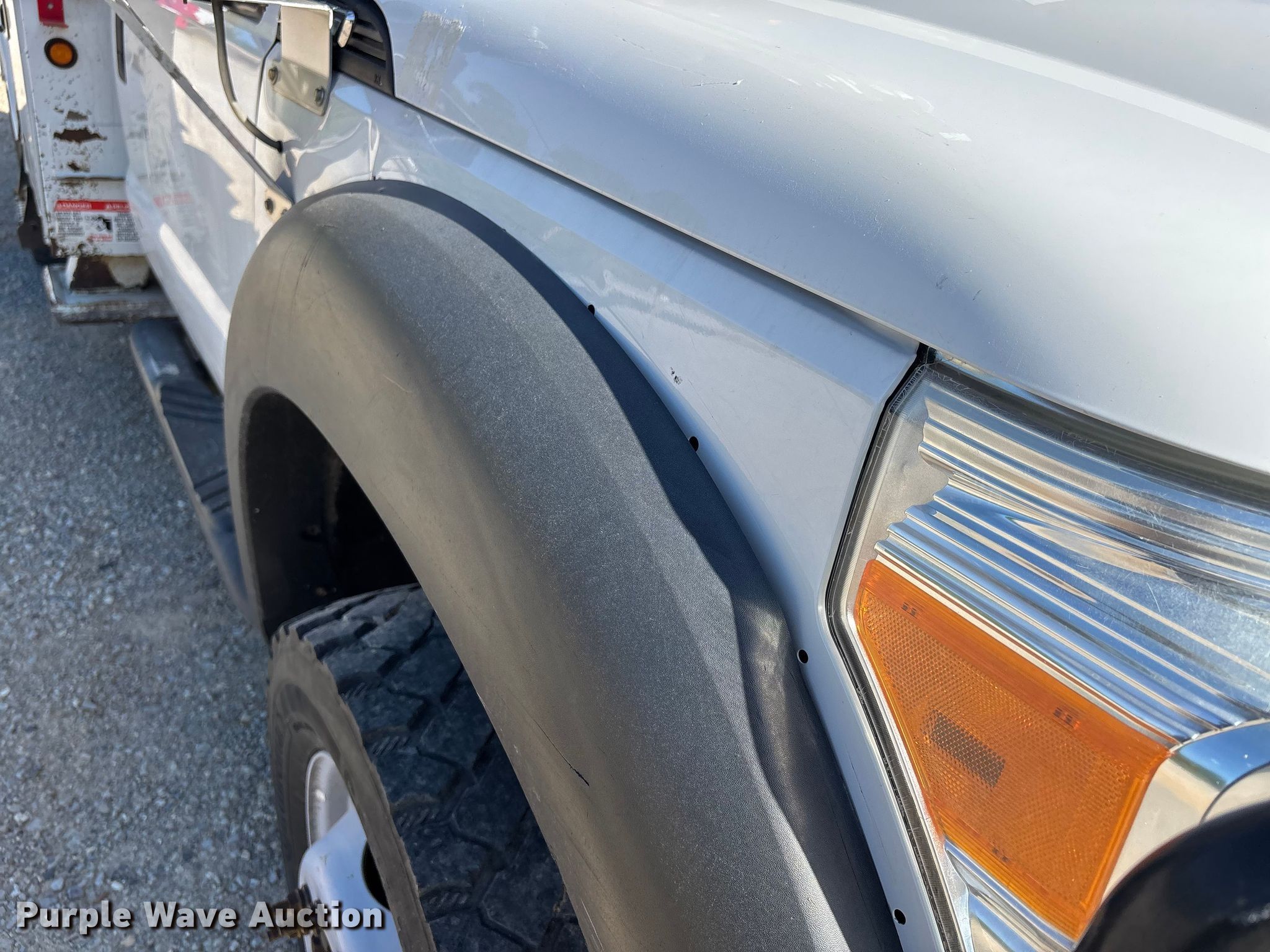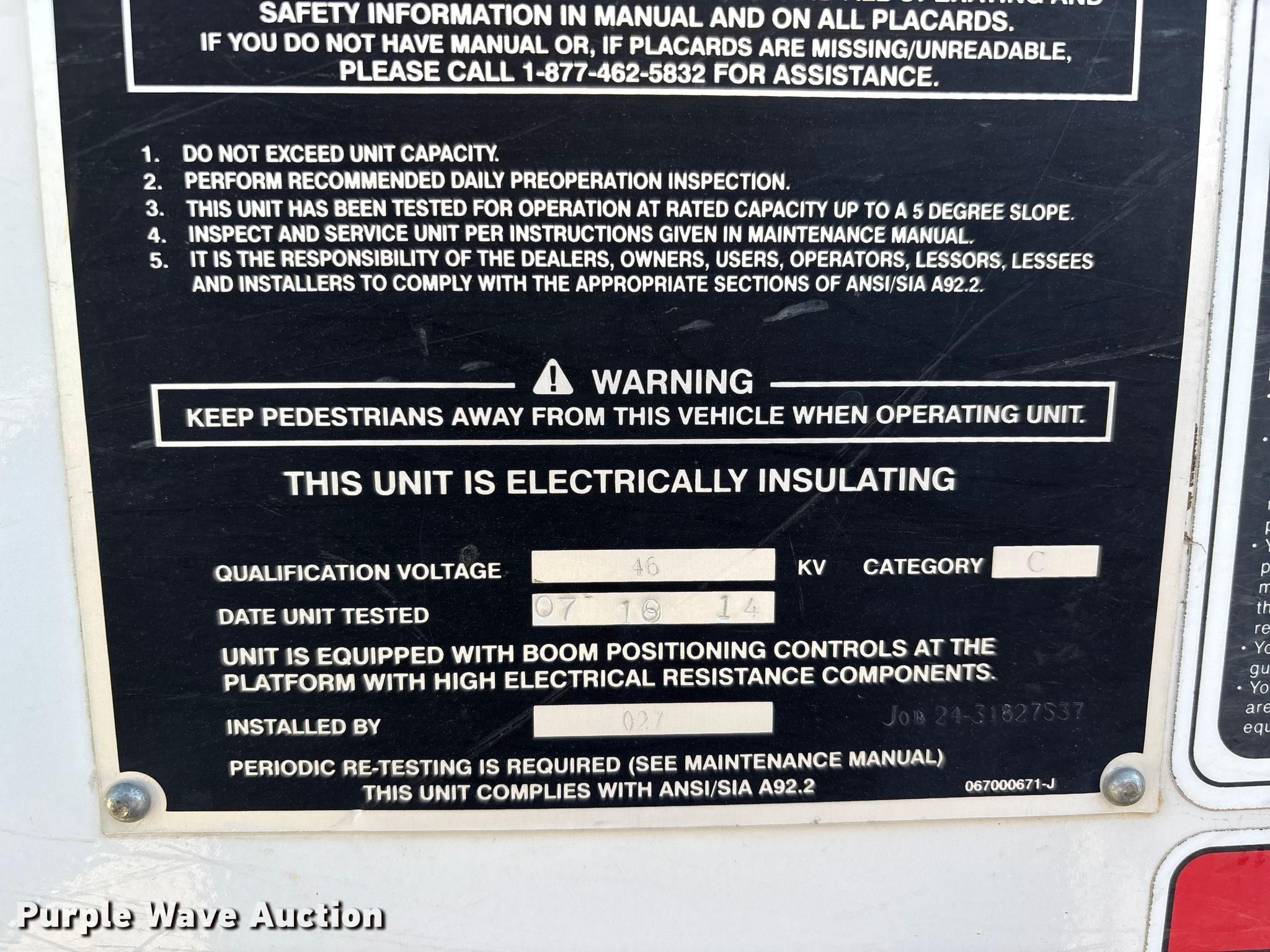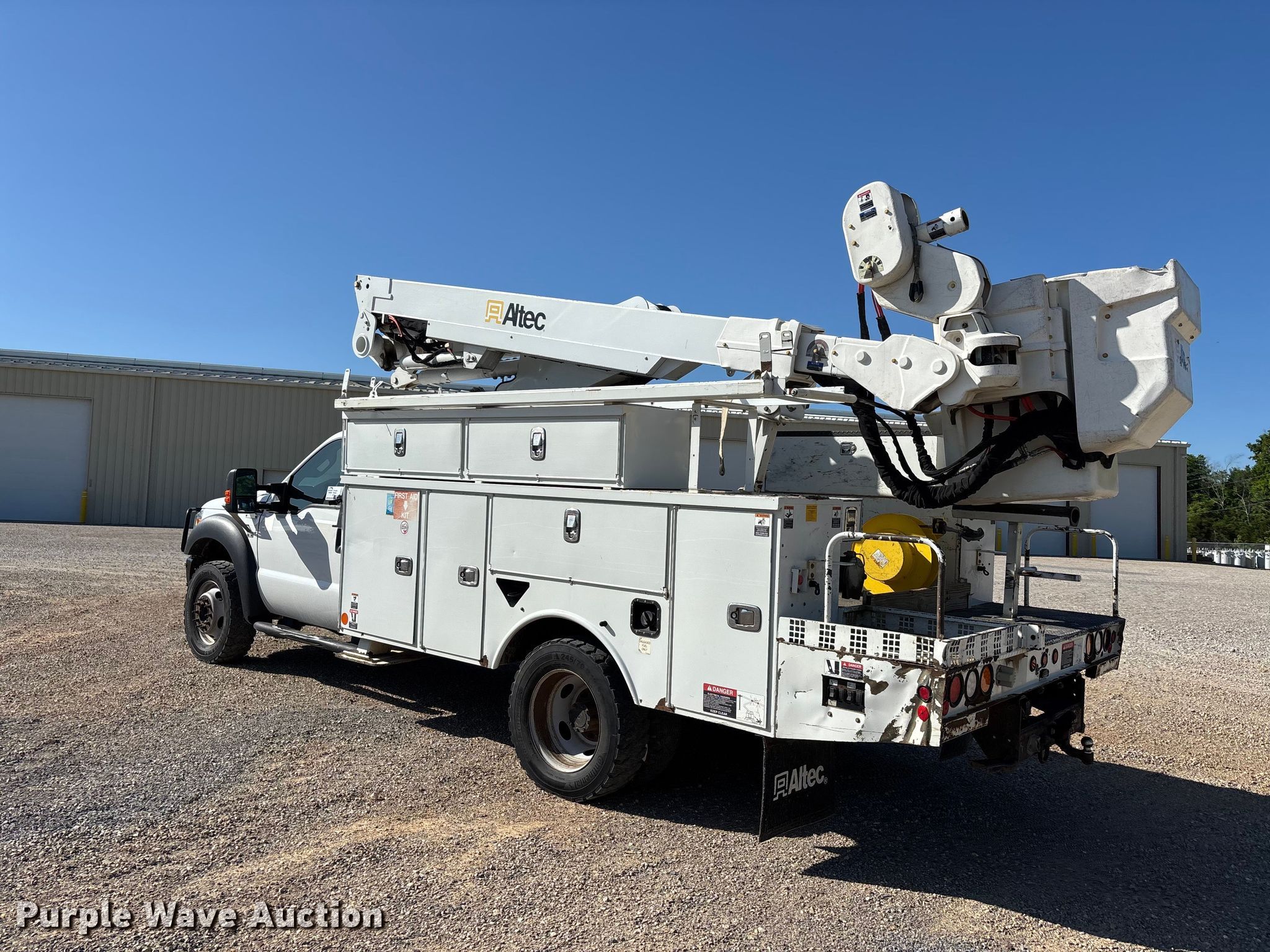 2015 Ford F550 bucket truck. Miles: 187,894 on odometer, Hours: 2,202 on meter, VIN: 1FDUF5HY8FEA23363, Unit #: 46. Engine For, Displacement: 6.8L, Cylinders: 10, Fuel type: Gas. Transmission Automatic. Chassis Four wheel drive, Axles: Single, Suspension: Spring, Brakes: Hydraulic, PTO, GVWR: 19,500 lbs. Interior AC, Heat, Heated mirrors, Power windows, Power locks, Cruise control, Auxiliary controls, Brake controller. Features Bed Utility bed, Altec, Length: 11', Width: 7' 10", Boom Altec AT40 M, Boom length: 40', Maximum lift capacity: 400 lbs, Maximum lift height: 40', Boom type: Articulating, Insulated, Telescopic, Man basket, Boom controls Lower, Basket.. Tires Size: 245/70R19.5. Notes Dash warning indicator: Check engine, ABS, Airbag, Windshield chipped or cracked, Possible mass airflow sensor issue. Missouri title. Title distribution may be delayed up to 14 days from verification of funds. Ozark Border Electric Cooperative. Poplar Bluff, MO 63901