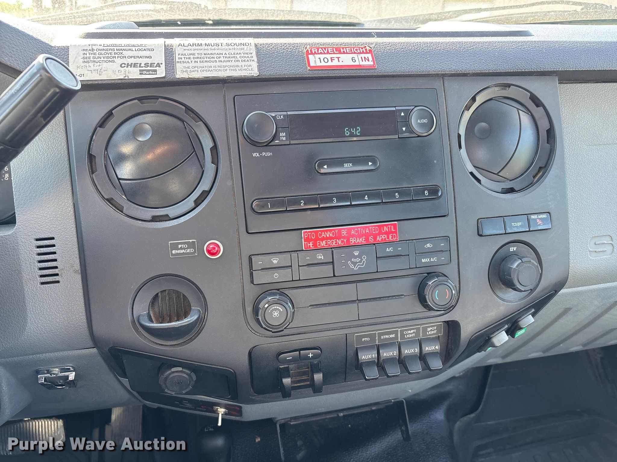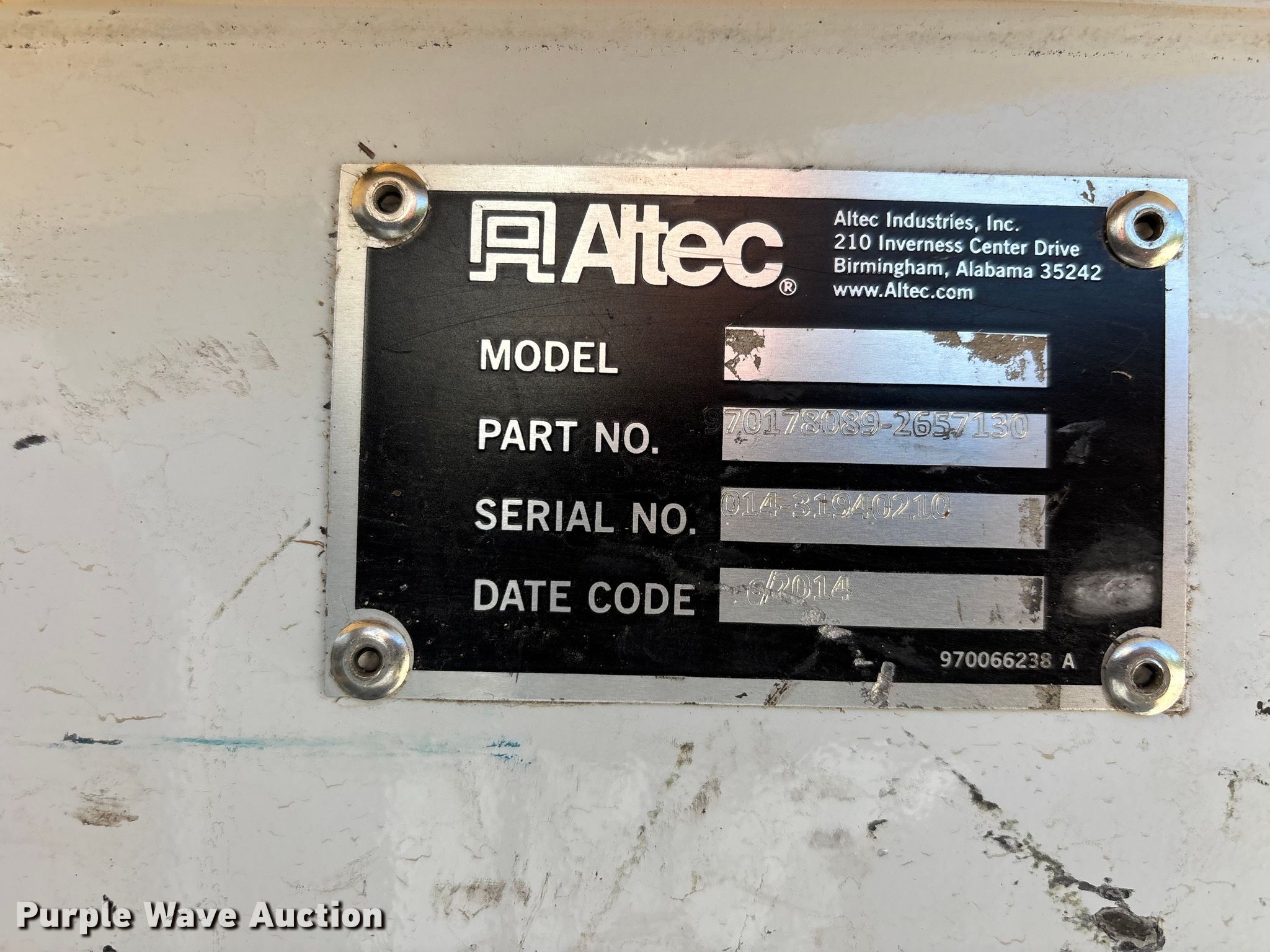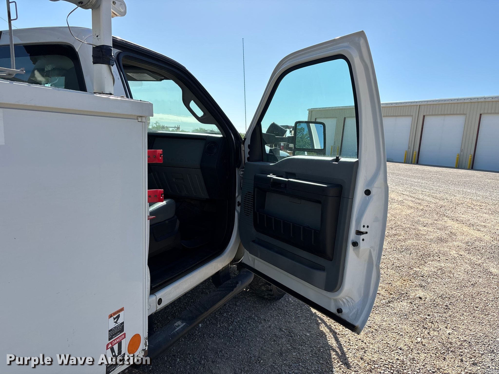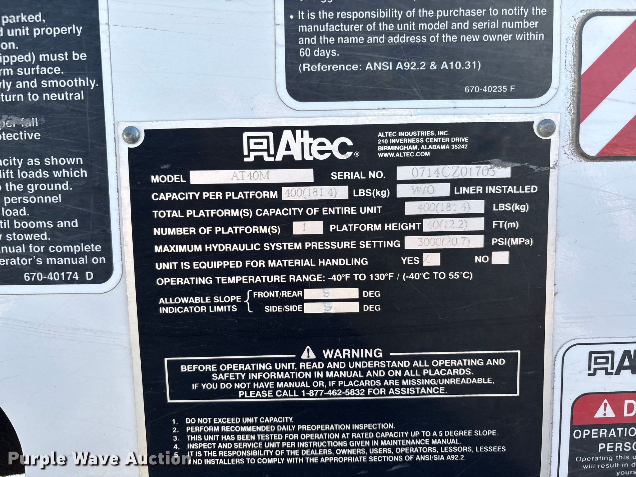 2015 Ford F550 bucket truck. Miles: 187,894 on odometer, Hours: 2,202 on meter, VIN: 1FDUF5HY8FEA23363, Unit #: 46. Engine For, Displacement: 6.8L, Cylinders: 10, Fuel type: Gas. Transmission Automatic. Chassis Four wheel drive, Axles: Single, Suspension: Spring, Brakes: Hydraulic, PTO, GVWR: 19,500 lbs. Interior AC, Heat, Heated mirrors, Power windows, Power locks, Cruise control, Auxiliary controls, Brake controller. Features Bed Utility bed, Altec, Length: 11', Width: 7' 10", Boom Altec AT40 M, Boom length: 40', Maximum lift capacity: 400 lbs, Maximum lift height: 40', Boom type: Articulating, Insulated, Telescopic, Man basket, Boom controls Lower, Basket.. Tires Size: 245/70R19.5. Notes Dash warning indicator: Check engine, ABS, Airbag, Windshield chipped or cracked, Possible mass airflow sensor issue. Missouri title. Title distribution may be delayed up to 14 days from verification of funds. Ozark Border Electric Cooperative. Poplar Bluff, MO 63901