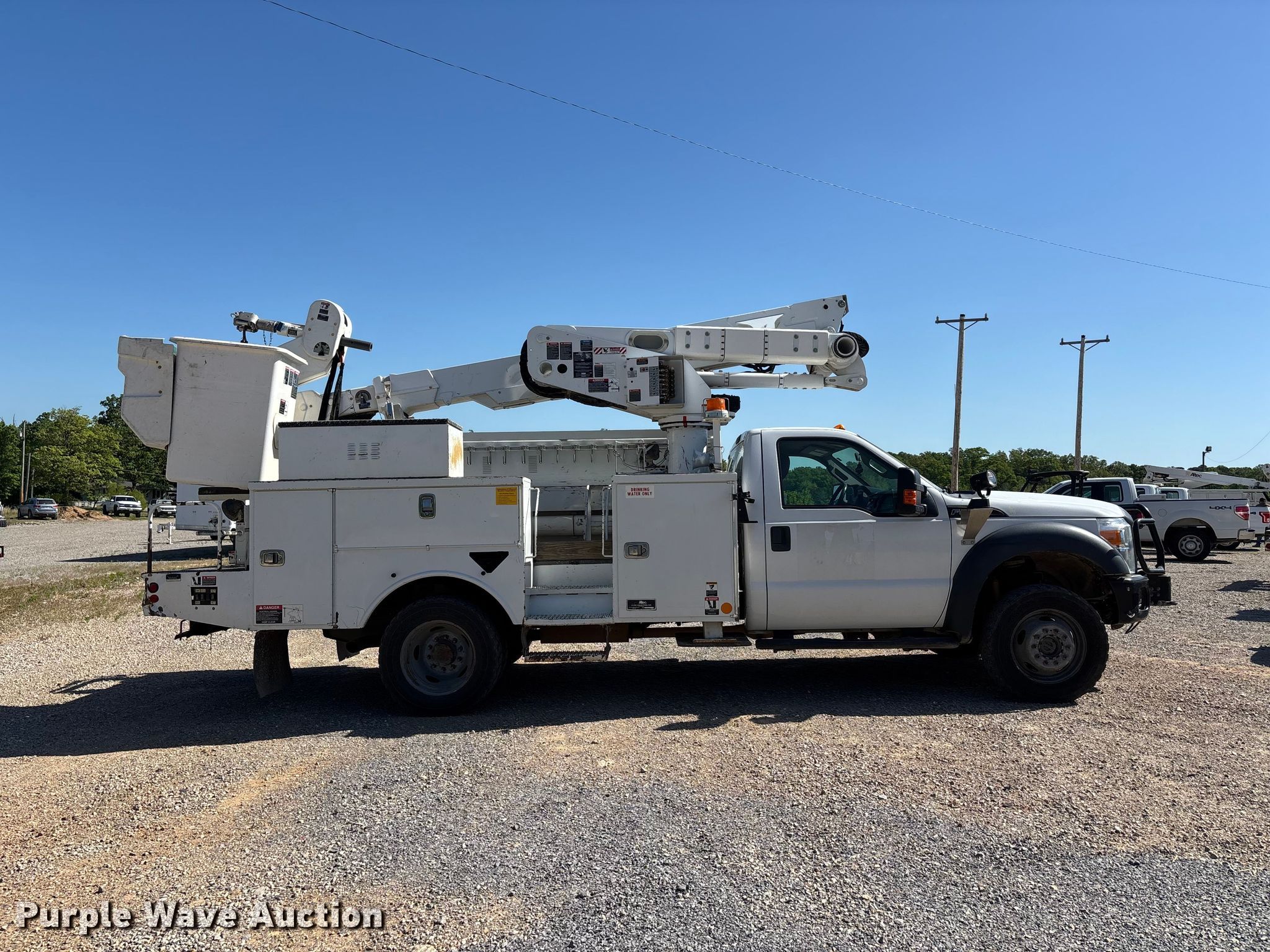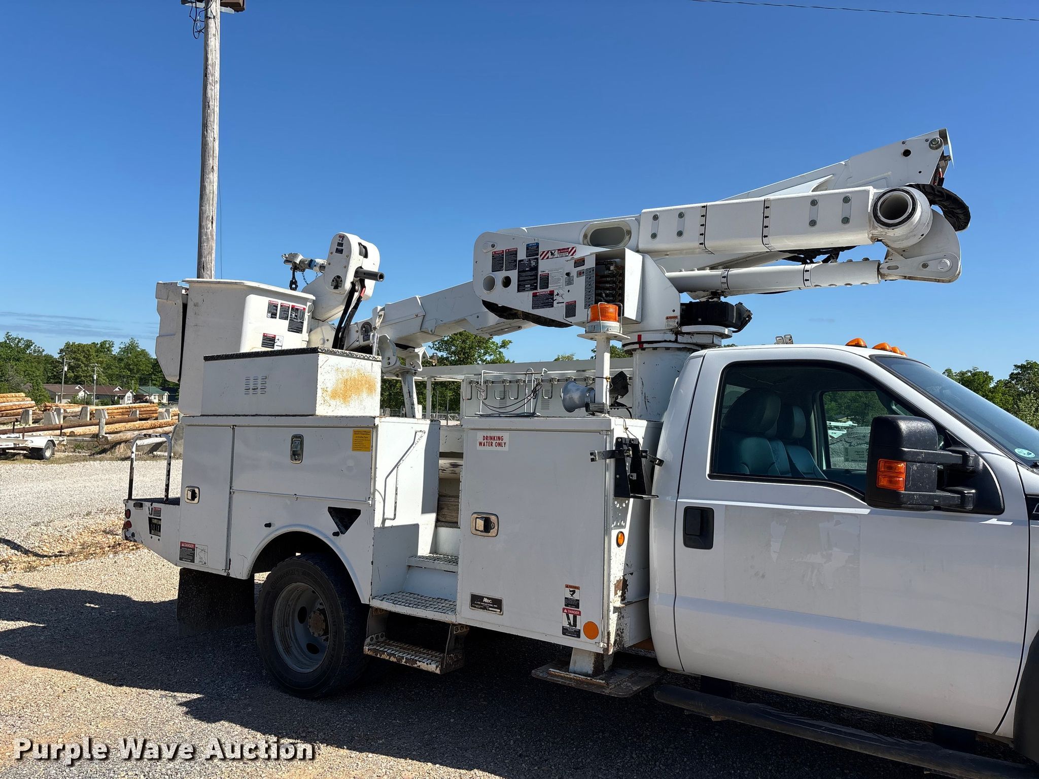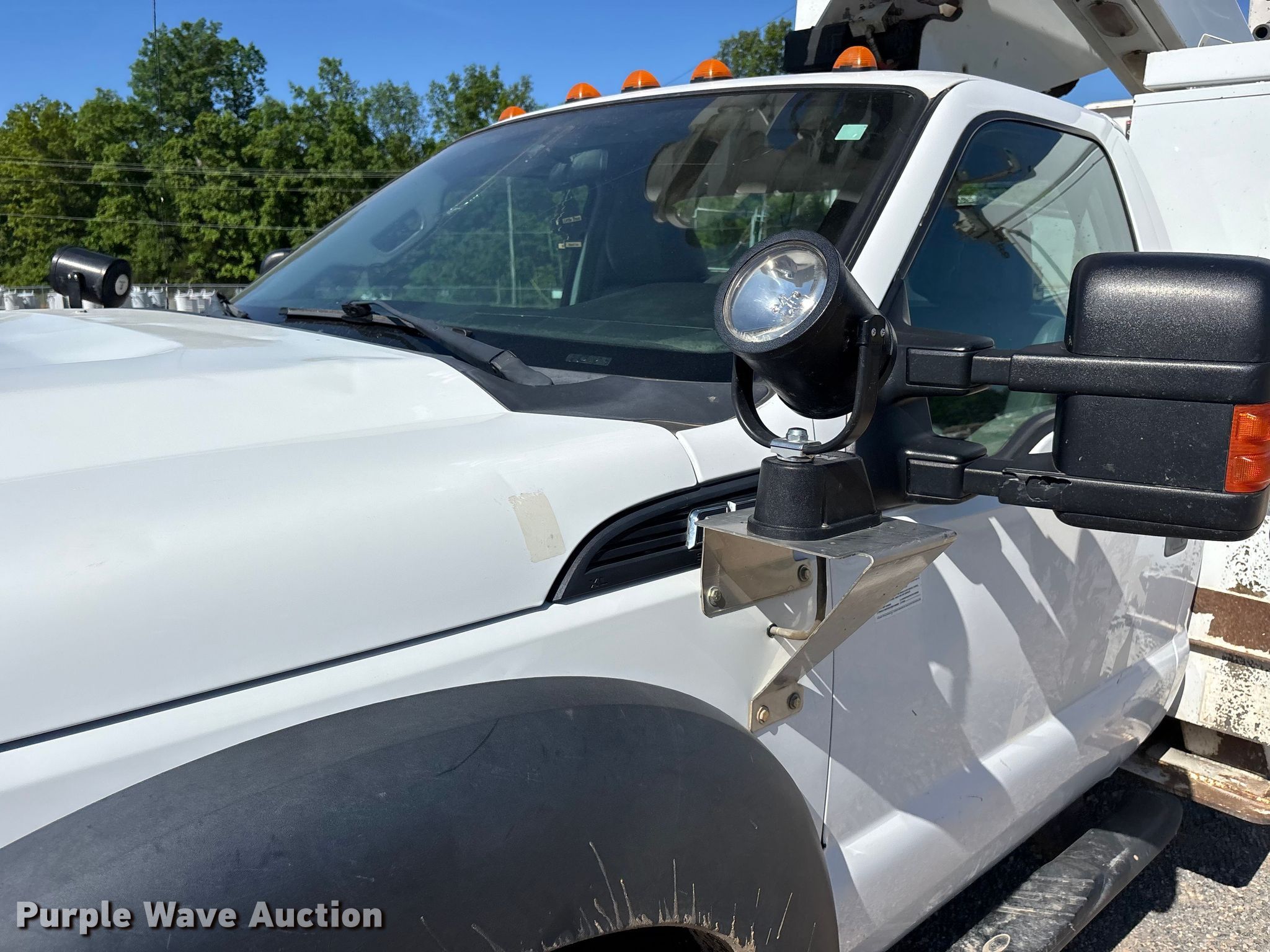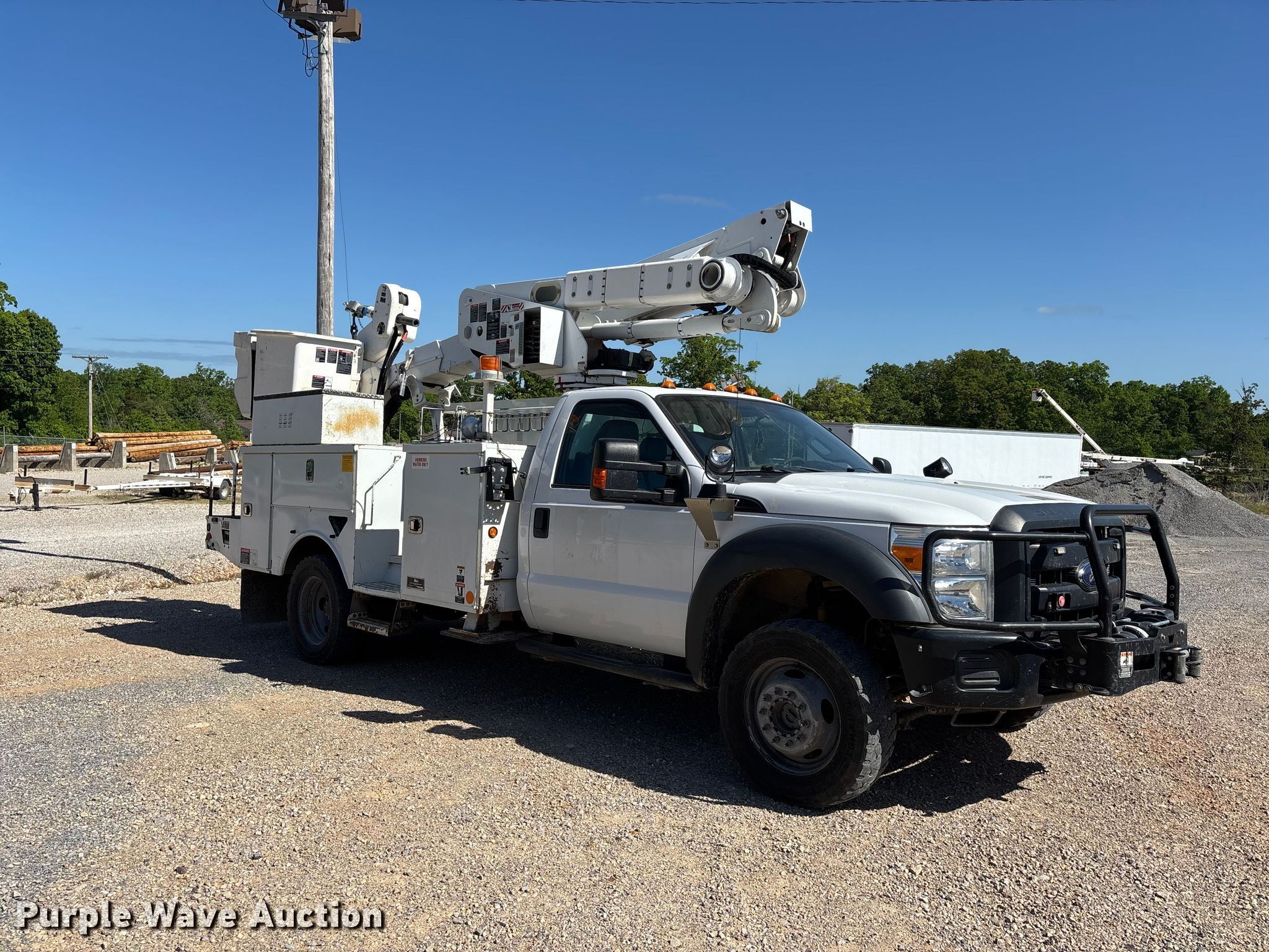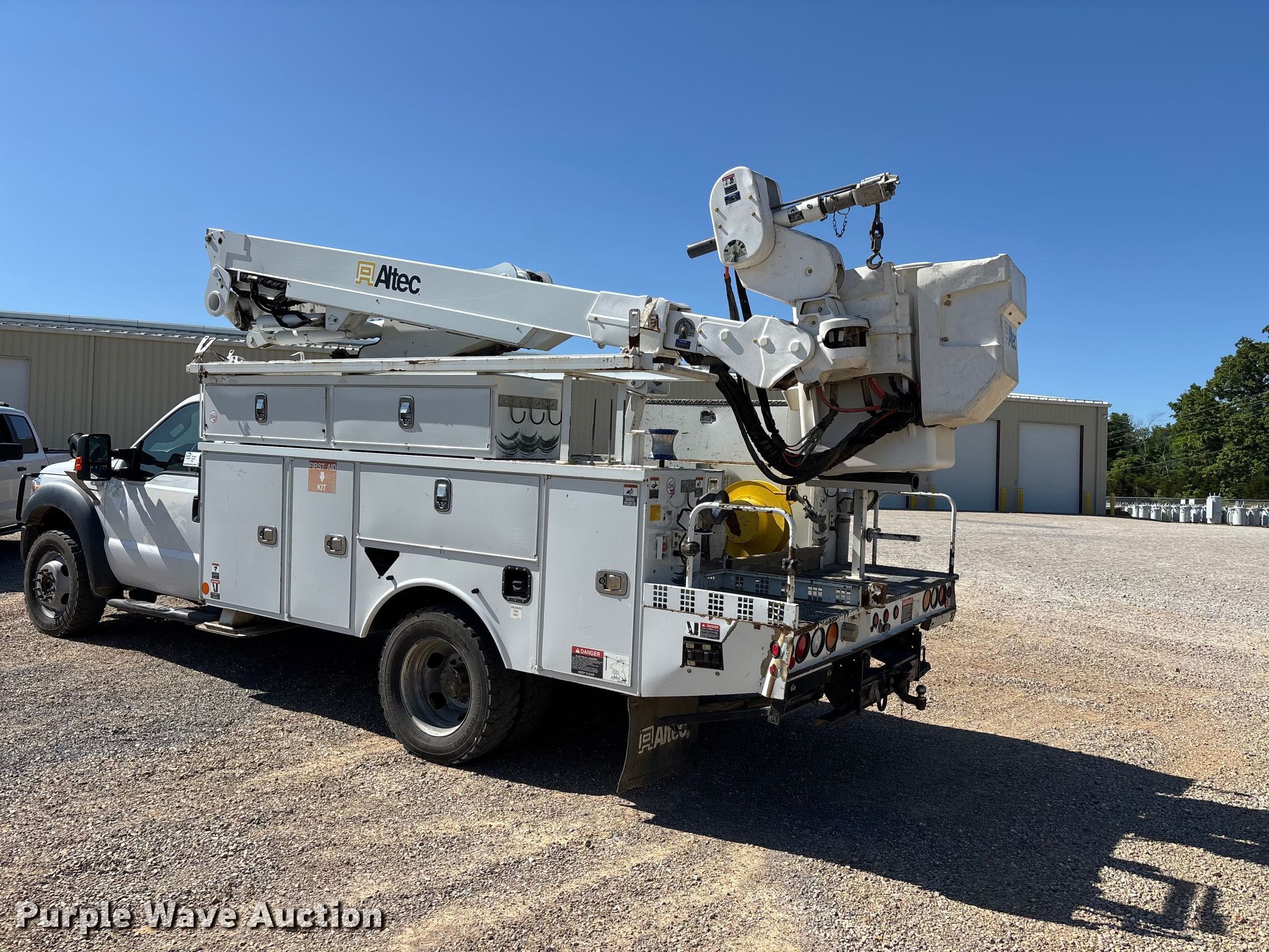 2015 Ford F550 bucket truck. Miles: 121,866 on odometer, VIN: 1FDUF5HYXFEA16415, Unit #: 5. Engine Displacement: 6.8L, Cylinders: 10, Fuel type: Gas. Transmission Automatic. Chassis Four wheel drive, Axles: Single, Suspension: Spring, Brakes: Hydraulic, PTO, GVWR: 19,500 lbs. Interior AC, Heat, Heated mirrors, Power windows, Power locks, Cruise control, Auxiliary controls, Brake controller. Features Bed Utility bed, Altec, Length: 11', Width: 7' 10", Height: 10' 7", Boom Altec AT40M, Maximum lift capacity: 400 lbs, Maximum lift height: 40', Boom type: Articulating, Insulated, Telescopic, Man basket, Boom controls Lower, Basket, Material handler. Tires Size: 245/70R19.5. Notes Windshield chipped or cracked. Missouri title. Title distribution may be delayed up to 14 days from verification of funds. Ozark Border Electric Cooperative. Poplar Bluff, MO 63901