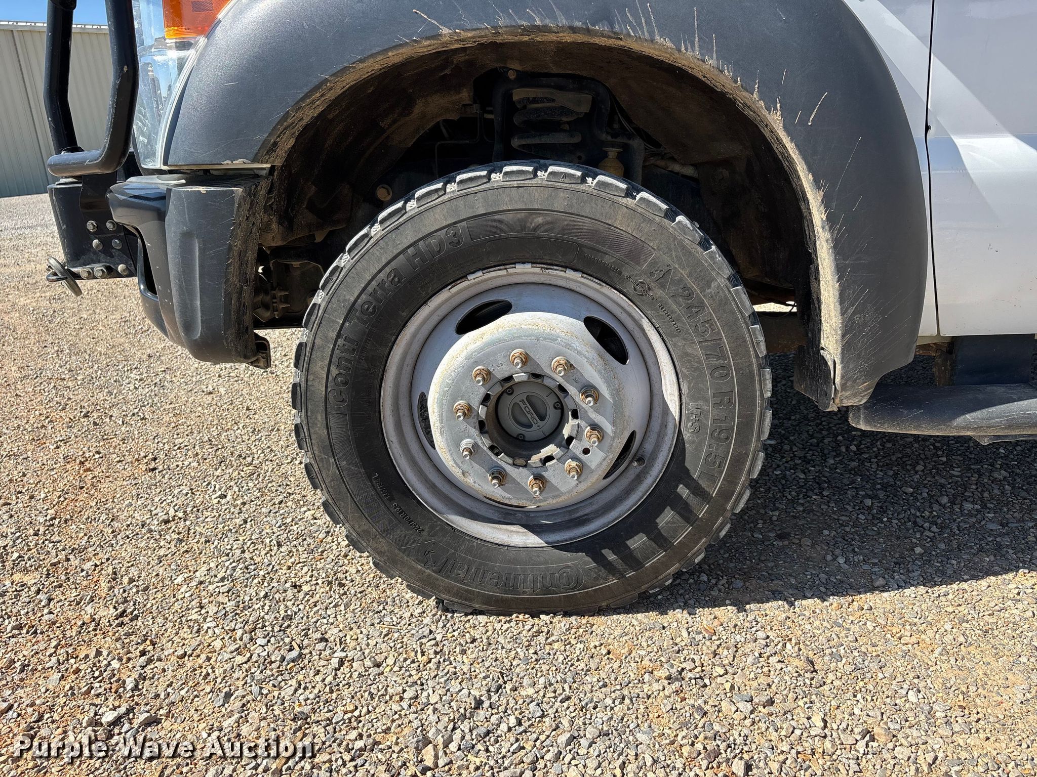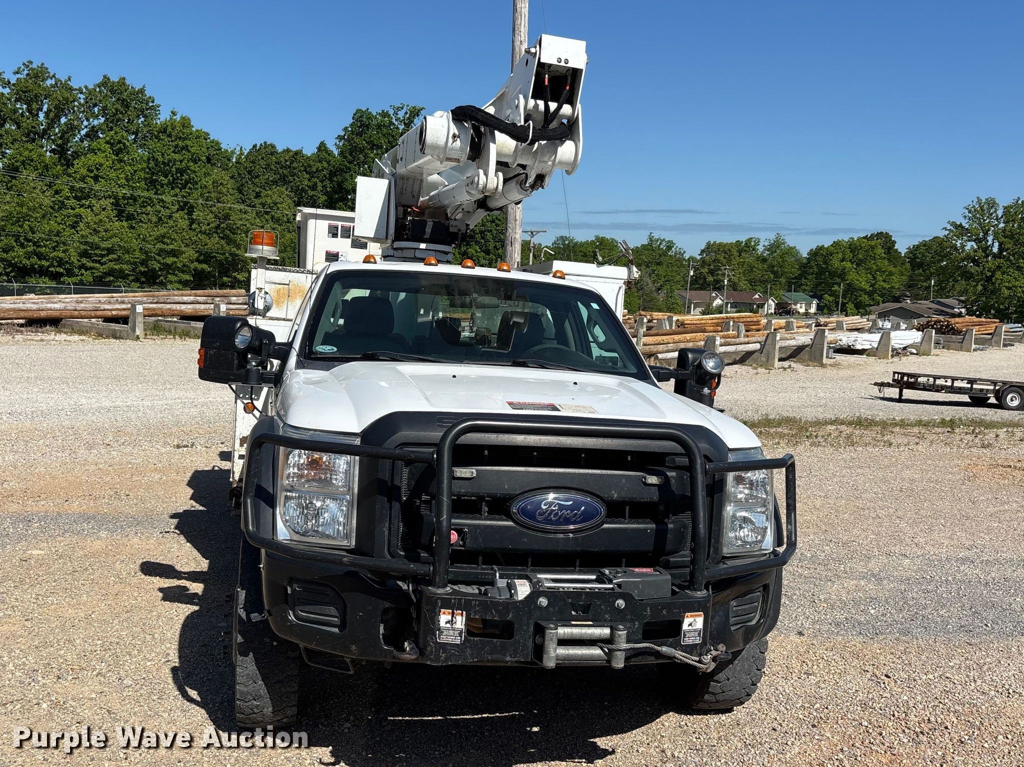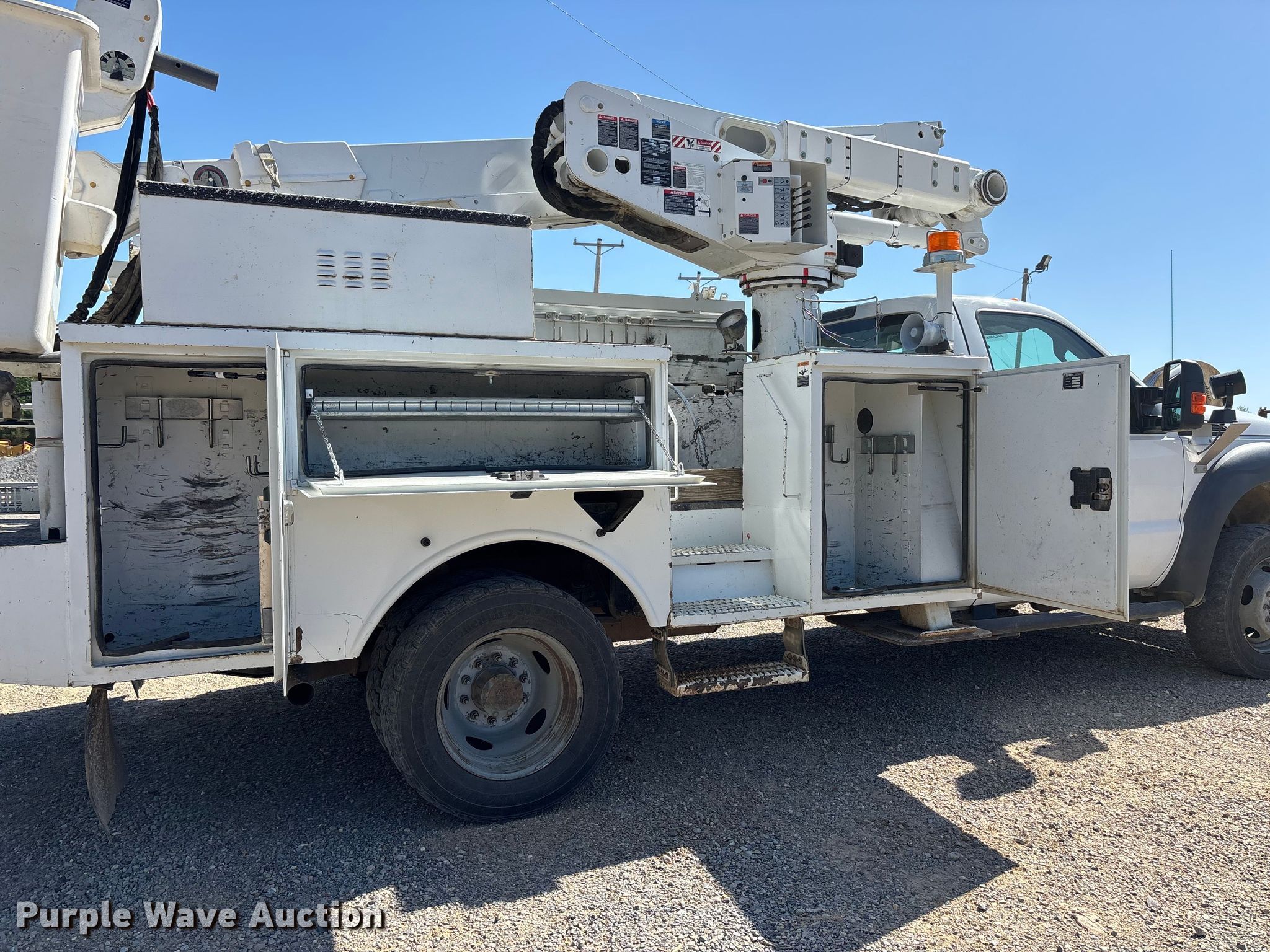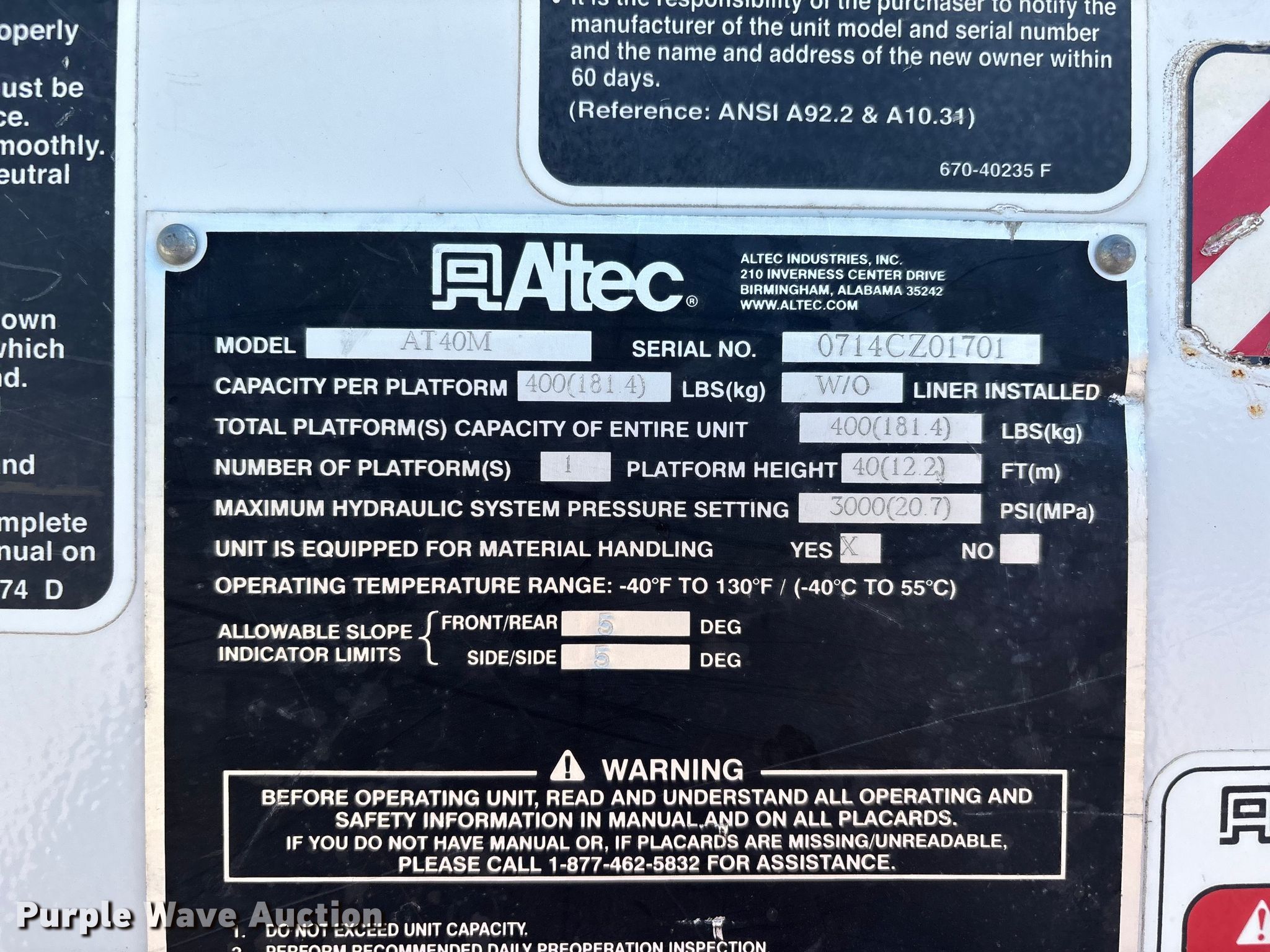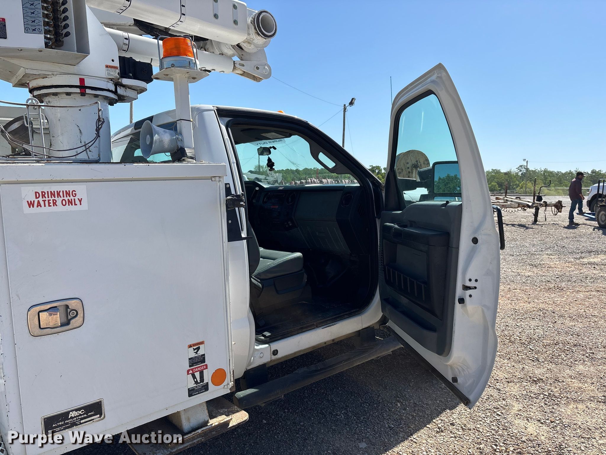 2015 Ford F550 bucket truck. Miles: 121,866 on odometer, VIN: 1FDUF5HYXFEA16415, Unit #: 5. Engine Displacement: 6.8L, Cylinders: 10, Fuel type: Gas. Transmission Automatic. Chassis Four wheel drive, Axles: Single, Suspension: Spring, Brakes: Hydraulic, PTO, GVWR: 19,500 lbs. Interior AC, Heat, Heated mirrors, Power windows, Power locks, Cruise control, Auxiliary controls, Brake controller. Features Bed Utility bed, Altec, Length: 11', Width: 7' 10", Height: 10' 7", Boom Altec AT40M, Maximum lift capacity: 400 lbs, Maximum lift height: 40', Boom type: Articulating, Insulated, Telescopic, Man basket, Boom controls Lower, Basket, Material handler. Tires Size: 245/70R19.5. Notes Windshield chipped or cracked. Missouri title. Title distribution may be delayed up to 14 days from verification of funds. Ozark Border Electric Cooperative. Poplar Bluff, MO 63901