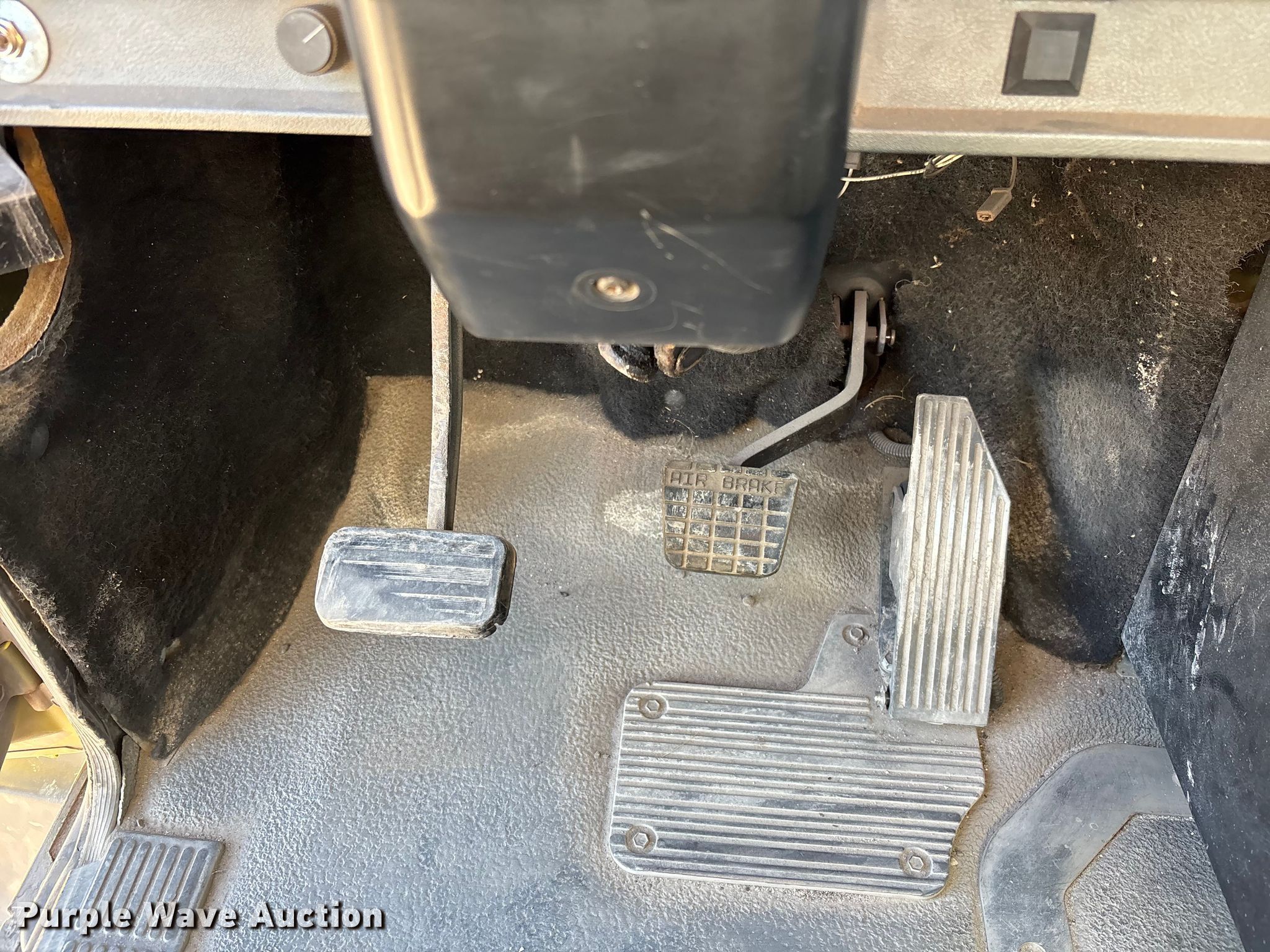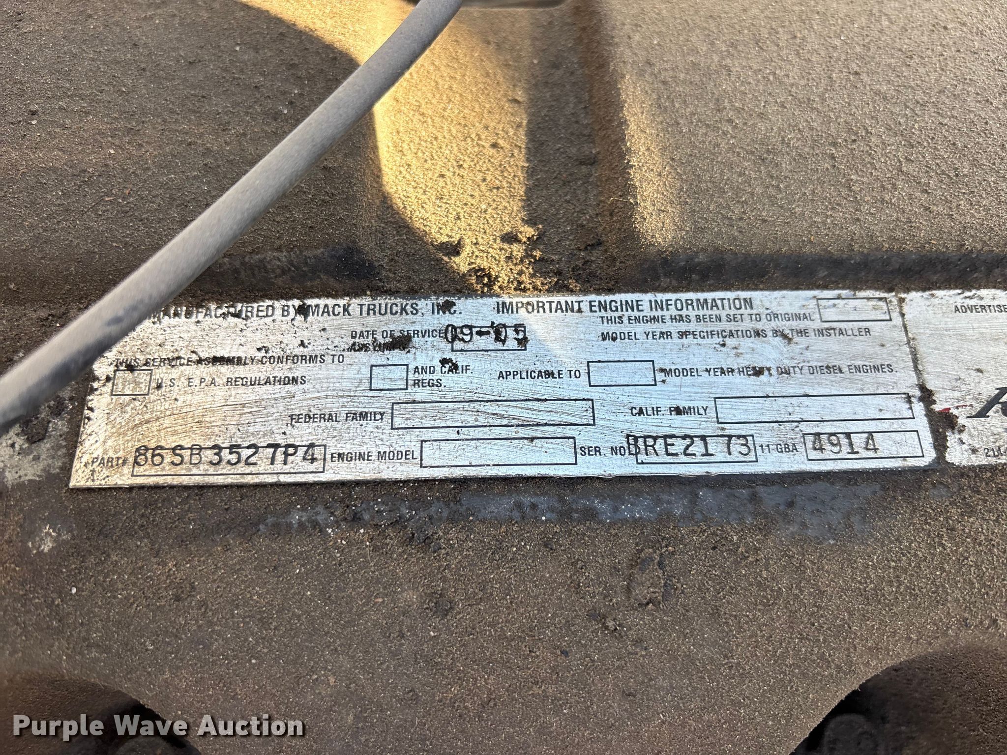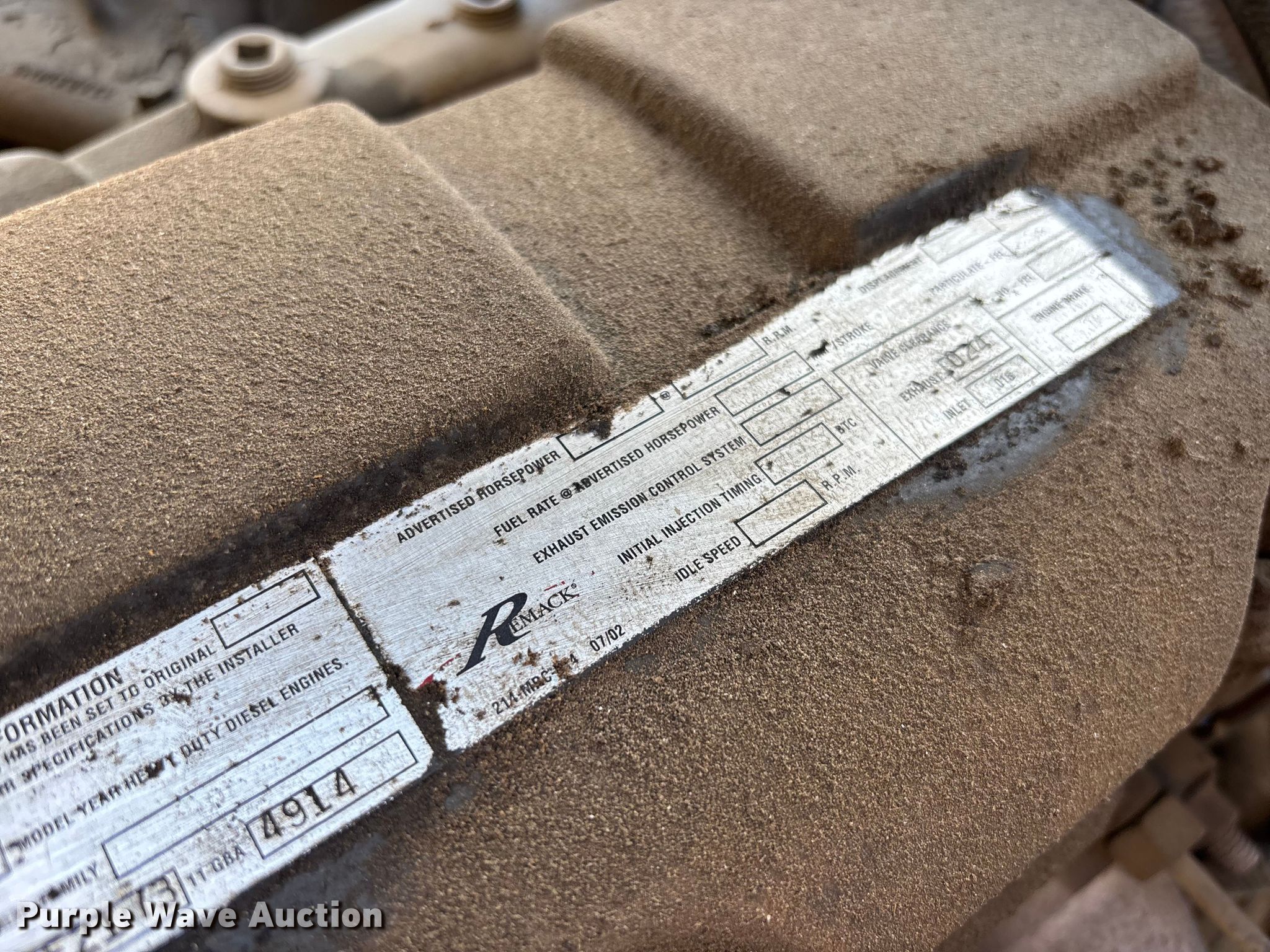 2000 Mack CH613 semi truck. Miles: 423,594 on odometer, Hours: 20,233 on meter, VIN: 1M1AA13Y6YW124453. Engine ReMack, Cylinders: 6, Fuel type: Diesel. Transmission Eaton fuller, Manual, Speed: 9. Chassis Four wheel drive, Axles: Tandem, Suspension: Camelback, Brakes: Air, PTO, Wet kit, GVWR: 50,000 lbs. Interior AC, Heat, Heated mirrors. Features Fifth wheel type: Air operated, Sliding, Fuel tank: Dual. Tires Size: 11R22.5. Florida title. Title distribution may be delayed up to 14 days from verification of funds. MasterRock, LLC.. Sarasota, FL 34234