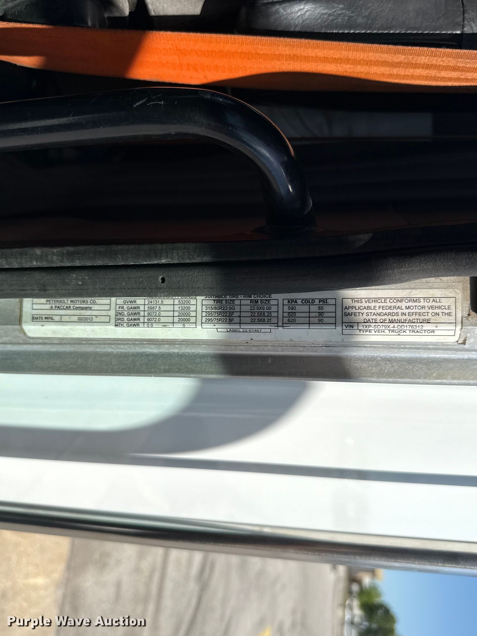 Purple Wave is selling a used Truck Tractor in Oklahoma. This item is a 2013 Peterbilt 365 semi truck with the following: Miles: 267,792 on odometer, Hours: 2,659 on meter, VIN: 1XPSD79X4DD176312, Unit #: CT312