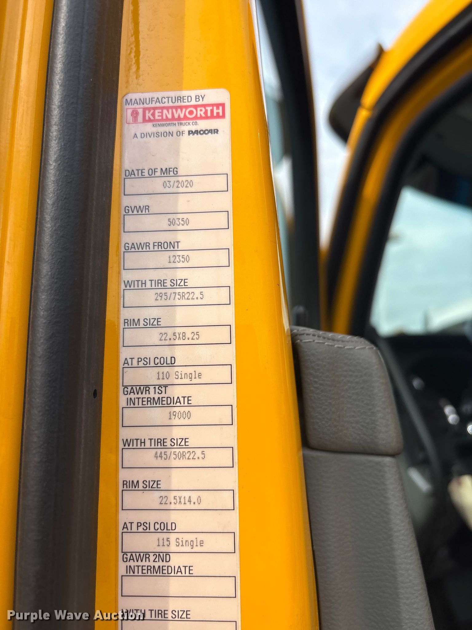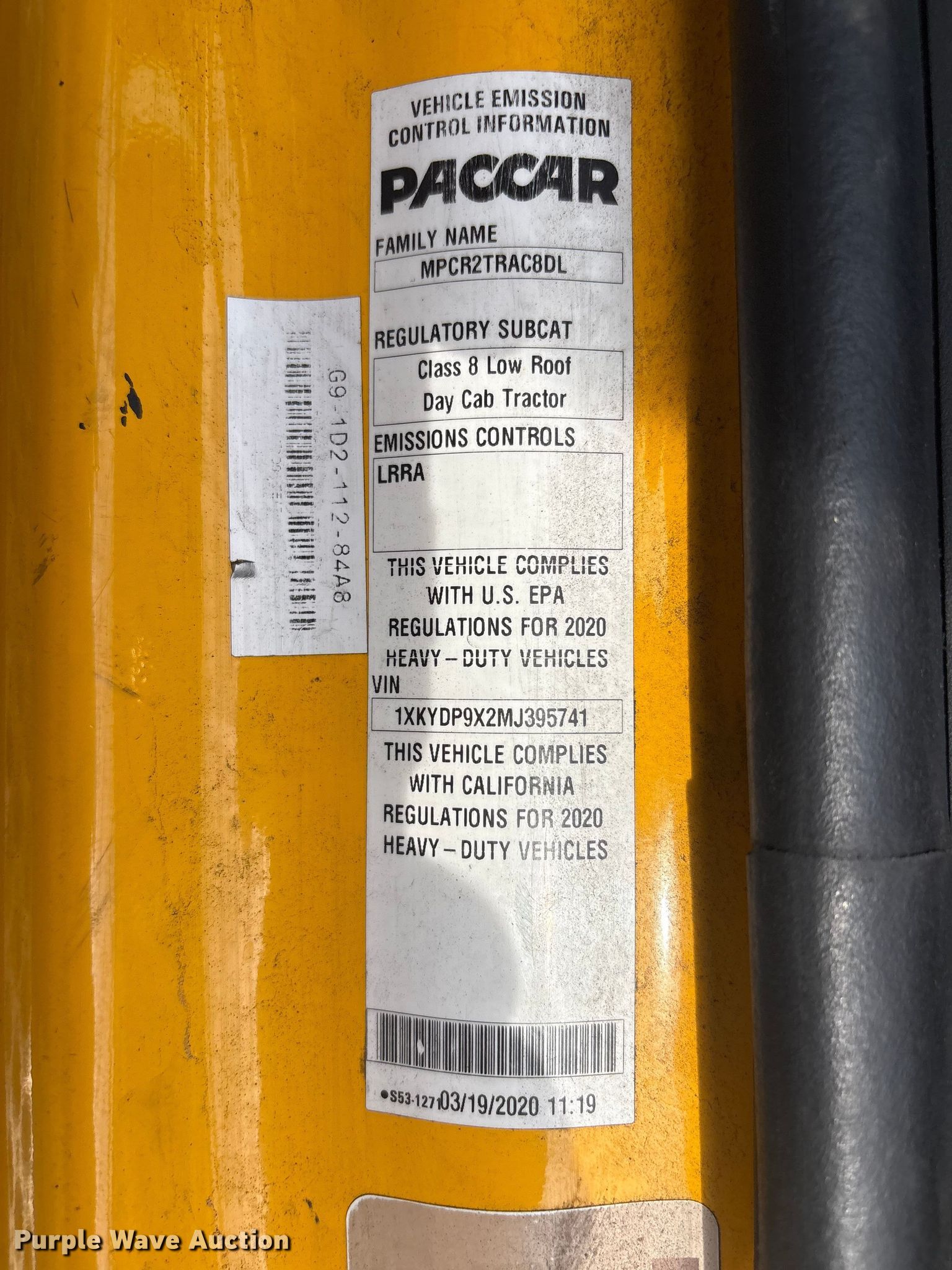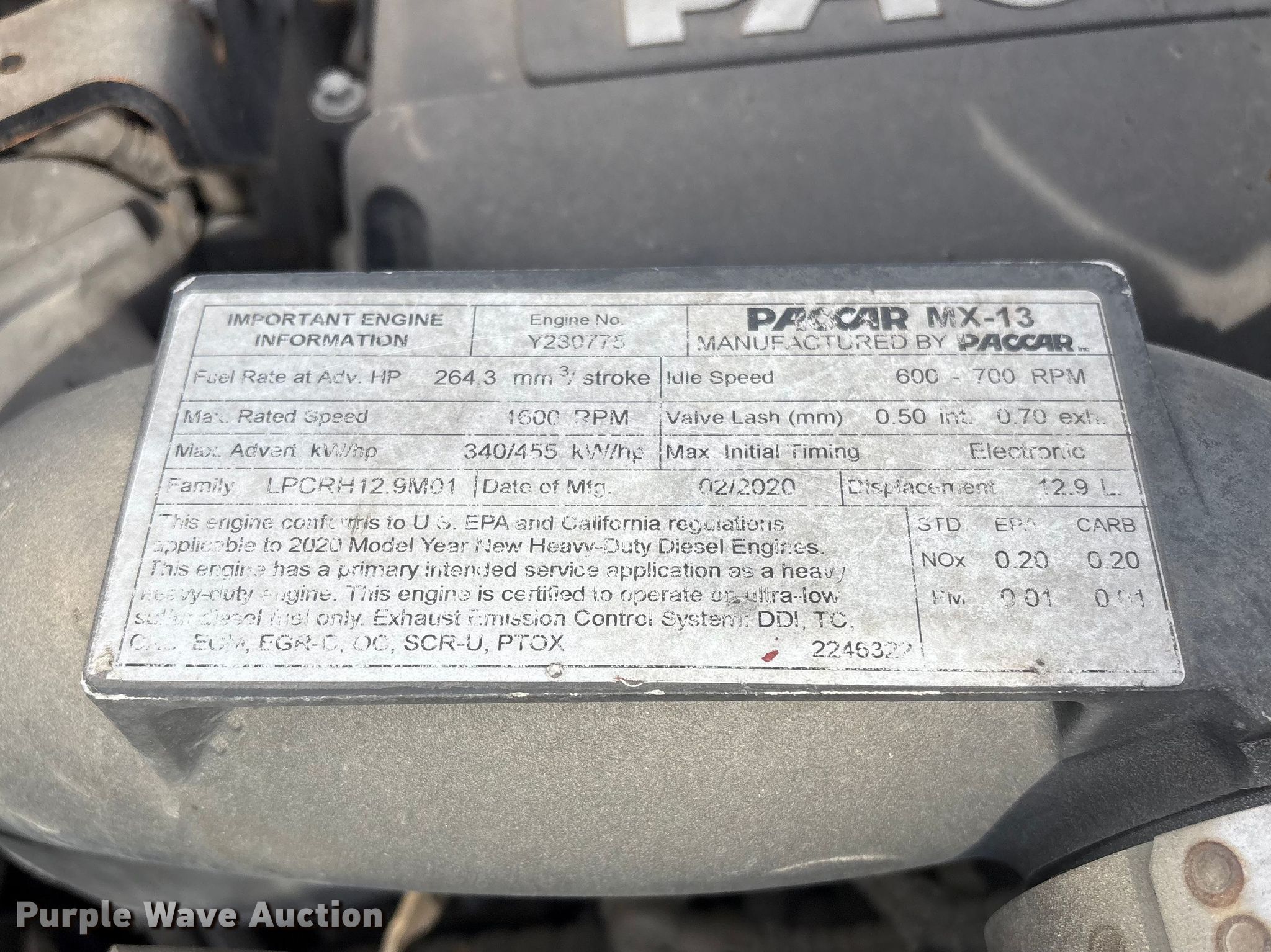 2021 Kenworth T680 semi truck. Miles: 330,757 on odometer, Hours: 9,039 on meter, VIN: 1XKYDP9X2MJ395741. Engine Paccar MX-13, Serial: Y230775, Displacement: 12.9L, Cylinders: 6, Fuel type: Diesel, HP: 405, Engine brake. Transmission Automated manual. Chassis Axles: Tandem, Differential lock: Inter-axle, Suspension: Air Dump valves, Brakes: Air, GVWR: 50,350 lbs FAWR: 12,350 lbs, IAWR: 19,000 lbs, RAWR: 19,000 lbs. Interior AC, Heat, Heated mirrors, Power windows, Power locks, Cruise control, Air ride cab. Features Deck plate: Aluminum, Fifth wheel type: Fixed, Fuel tank: Single. Tires Front: 295/75R22.5, Rear: 445/50R22.5. Notes Dash warning indicator: Check engine. Oklahoma title. Title distribution may be delayed up to 14 days from verification of funds. Broken Arrow, OK 74012