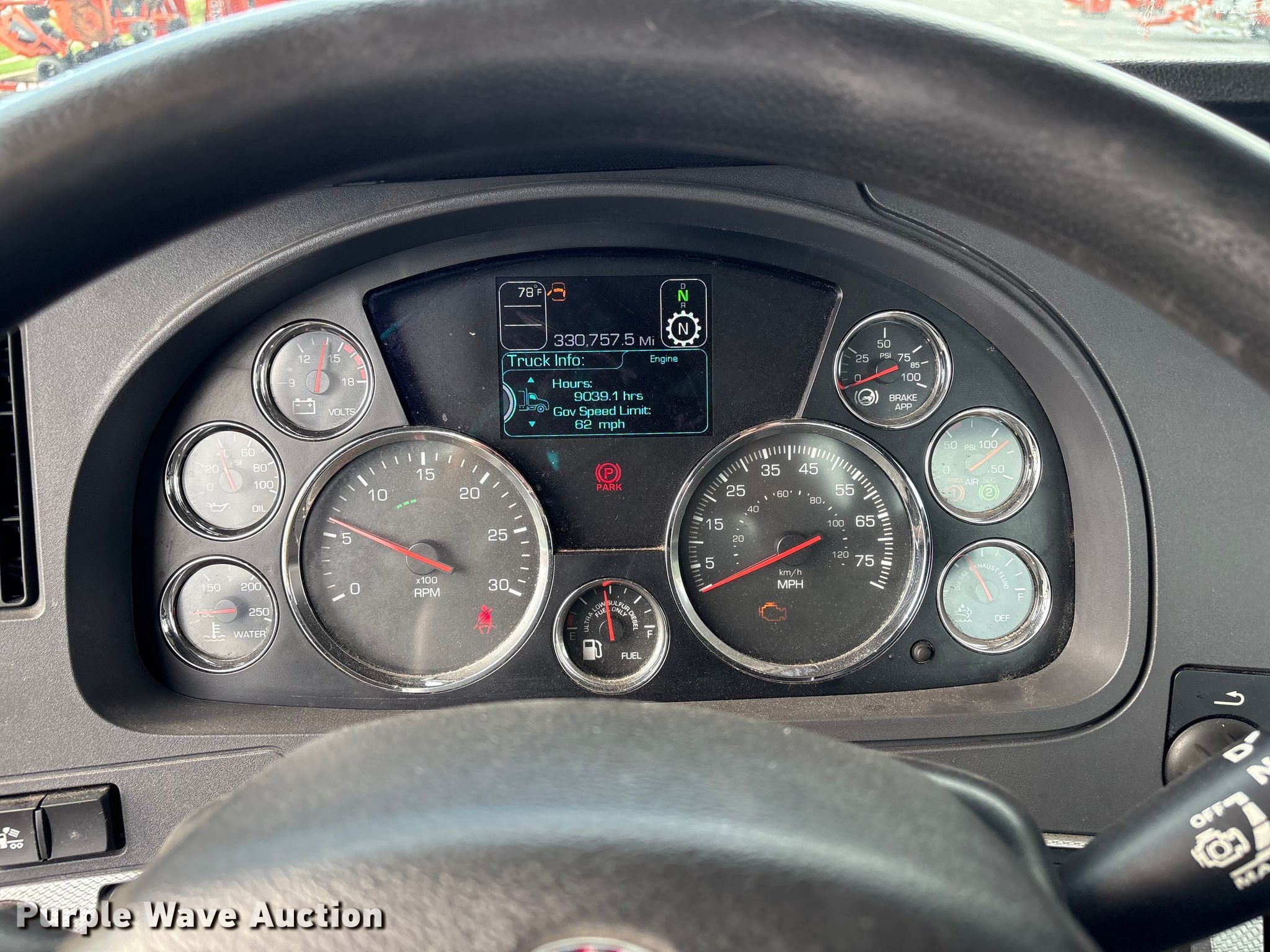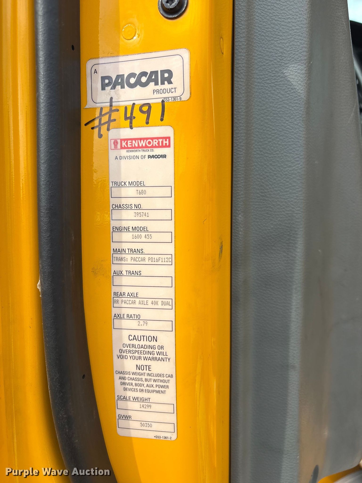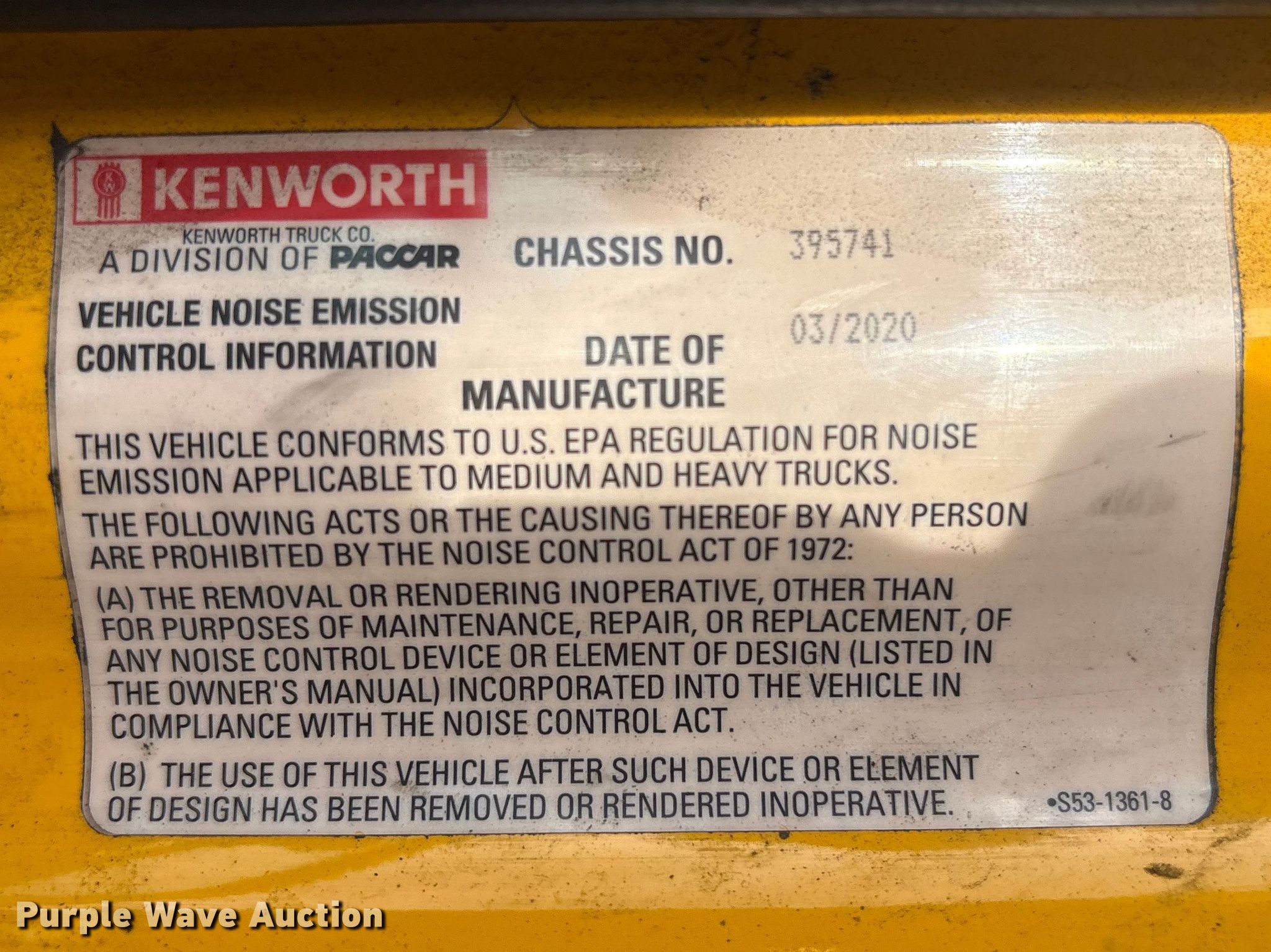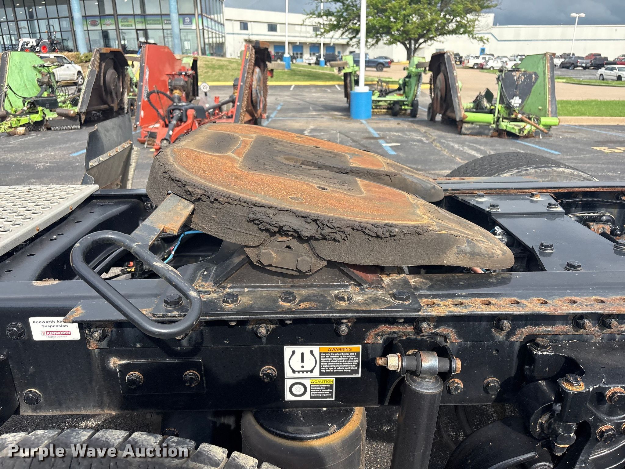 2021 Kenworth T680 semi truck. Miles: 330,757 on odometer, Hours: 9,039 on meter, VIN: 1XKYDP9X2MJ395741. Engine Paccar MX-13, Serial: Y230775, Displacement: 12.9L, Cylinders: 6, Fuel type: Diesel, HP: 405, Engine brake. Transmission Automated manual. Chassis Axles: Tandem, Differential lock: Inter-axle, Suspension: Air Dump valves, Brakes: Air, GVWR: 50,350 lbs FAWR: 12,350 lbs, IAWR: 19,000 lbs, RAWR: 19,000 lbs. Interior AC, Heat, Heated mirrors, Power windows, Power locks, Cruise control, Air ride cab. Features Deck plate: Aluminum, Fifth wheel type: Fixed, Fuel tank: Single. Tires Front: 295/75R22.5, Rear: 445/50R22.5. Notes Dash warning indicator: Check engine. Oklahoma title. Title distribution may be delayed up to 14 days from verification of funds. Broken Arrow, OK 74012