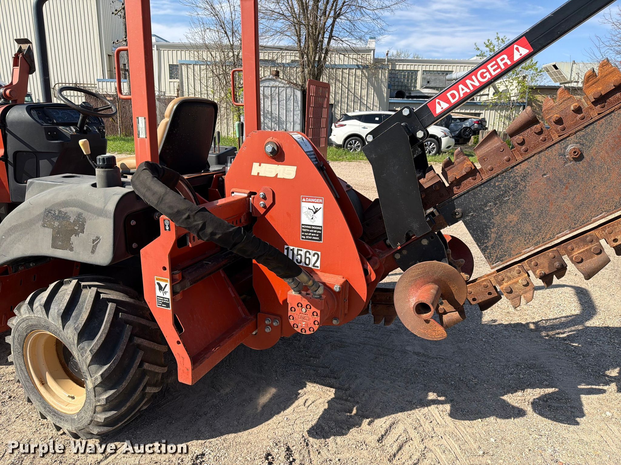 2004 Ditch Witch RT55 trencher. Hours: 753 on meter, Serial: 5Y0931. Engine Deutz, Cylinders: 4, Fuel type: Diesel. Transmission Hydrostatic, 2F - 2R, Two speed travel. Chassis Four wheel drive, Four wheel steer. Operators station OROPS. Features Trencher Model: H515, Serial: 5Y0593, Estimated dig depth: 87", Cutting width: 5", Side shift, Teeth: Rock, Dirt, Backhoe Model: A523, Serial: 5Y0945, Bucket width: 18", Backfill blade Width: 72". Tires Size: 31x15.50-15NHS. CCR Electrical Contractors LLC. Elburn, IL 60119