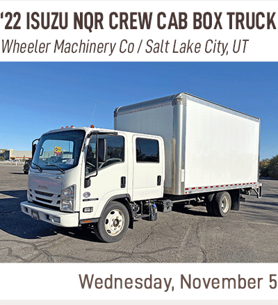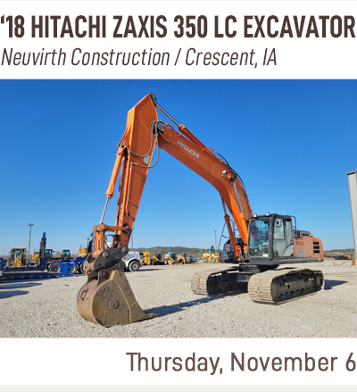 Tuesday November 04 Government Auction, Wednesday November 05 Vehicles and Equipment Auction, Thursday November 06 Construction Equipment Auction, Wednesday November 12 Ag Equipment Auction, Thursday November 13 Truck and Trailer Auction, Tuesday November 18 Government Auction, Wednesday November 19 Vehicles and Equipment Auction, Thursday November 20 Construction Equipment Auction, Tuesday December 02 Government Auction, Wednesday December 03 Vehicles and Equipment Auction, Thursday December 04 Construction Equipment Auction, Wednesday December 10 Ag Equipment Auction, Thursday December 11 Truck and Trailer Auction, Thursday December 18 Construction Equipment Auction, Tuesday December 30 Ag Equipment Auction